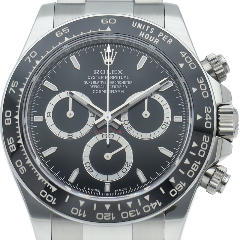 2023年新たにモデルチェンジしたコスモグラフ デイトナ。ロレックスのクロノグラフモデルとして登場したデイトナは、2023年に60周年を迎え第七世代となりました。変更点は、ベゼルのフチ周りにミドルケースと同一素材のメタルが使用され、ムーブメントにはコラムホイール&垂直クラッチ式のキャリバー4131を搭載。72時間パワーリザーブを誇ります。
