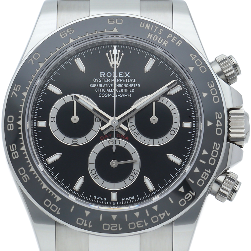2023年新たにモデルチェンジしたコスモグラフ デイトナ。ロレックスのクロノグラフモデルとして登場したデイトナは、2023年に60周年を迎え第七世代となりました。変更点は、ベゼルのフチ周りにミドルケースと同一素材のメタルが使用され、ムーブメントにはコラムホイール&垂直クラッチ式のキャリバー4131を搭載。72時間パワーリザーブを誇ります。