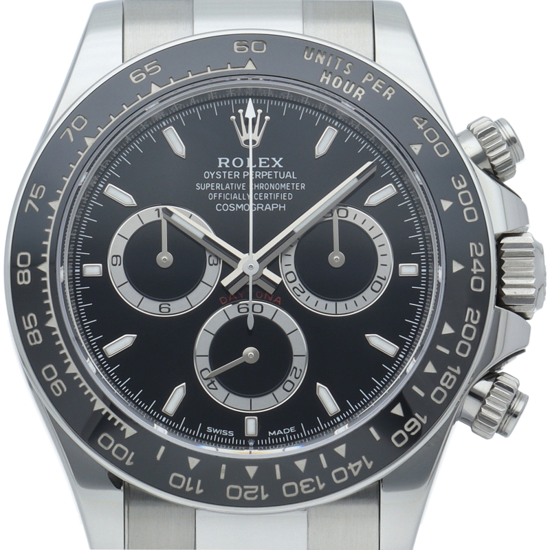 2023年新たにモデルチェンジしたコスモグラフ デイトナ。ロレックスのクロノグラフモデルとして登場したデイトナは、2023年に60周年を迎え第七世代となりました。変更点は、ベゼルのフチ周りにミドルケースと同一素材のメタルが使用され、ムーブメントにはコラムホイール&垂直クラッチ式のキャリバー4131を搭載。72時間パワーリザーブを誇ります。