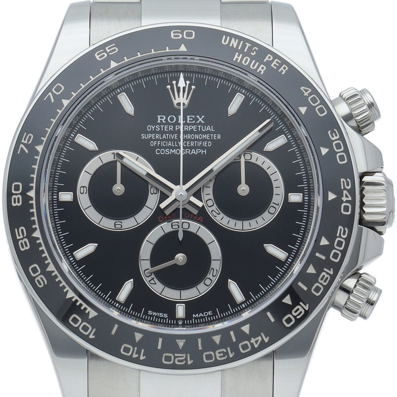 2023年新たにモデルチェンジしたコスモグラフ デイトナ。ロレックスのクロノグラフモデルとして登場したデイトナは、2023年に60周年を迎え第七世代となりました。変更点は、ベゼルのフチ周りにミドルケースと同一素材のメタルが使用され、ムーブメントにはコラムホイール&垂直クラッチ式のキャリバー4131を搭載。72時間パワーリザーブを誇ります。