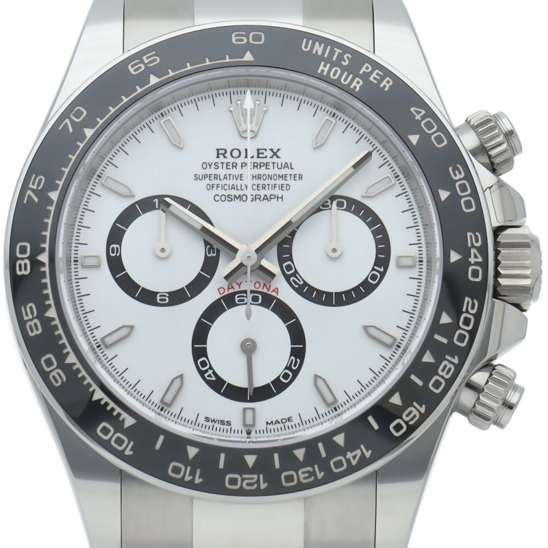 2023年新たにモデルチェンジしたコスモグラフ デイトナ。ロレックスのクロノグラフモデルとして登場したデイトナは、2023年に60周年を迎え第七世代となりました。変更点は、ベゼルのフチ周りにミドルケースと同一素材のメタルが使用され、ムーブメントにはコラムホイール&垂直クラッチ式のキャリバー4131を搭載。72時間パワーリザーブを誇ります。