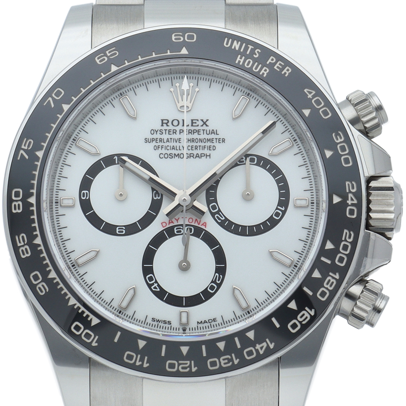 2023年新たにモデルチェンジしたコスモグラフ デイトナ。ロレックスのクロノグラフモデルとして登場したデイトナは、2023年に60周年を迎え第七世代となりました。変更点は、ベゼルのフチ周りにミドルケースと同一素材のメタルが使用され、ムーブメントにはコラムホイール&垂直クラッチ式のキャリバー4131を搭載。72時間パワーリザーブを誇ります。