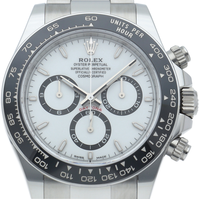 2023年新たにモデルチェンジしたコスモグラフ デイトナ。ロレックスのクロノグラフモデルとして登場したデイトナは、2023年に60周年を迎え第七世代となりました。変更点は、ベゼルのフチ周りにミドルケースと同一素材のメタルが使用され、ムーブメントにはコラムホイール&垂直クラッチ式のキャリバー4131を搭載。72時間パワーリザーブを誇ります。