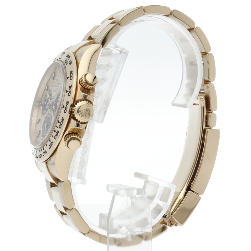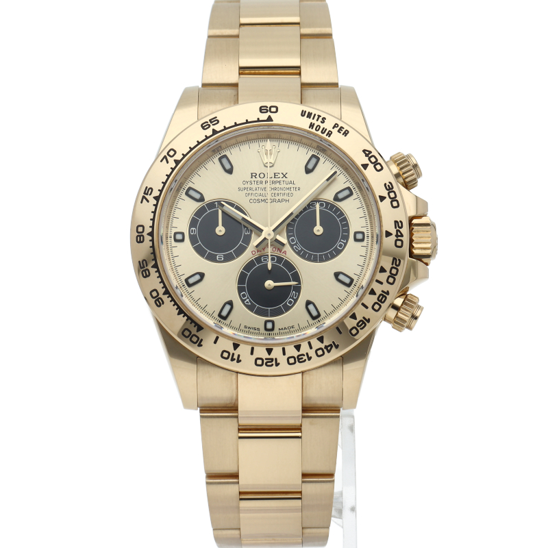 ロレックス「コスモグラフ デイトナ」(Ref.116508)。ケース、ブレス、ベゼルに至るまで18Kイエローゴールドを惜しみなく使用した至高の金無垢モデルです。ずっしりとした重量感と黄金の輝きが、圧倒的なステータス性を主張。スポーティさと極上のラグジュアリーが融合した、まさに「王様」の名にふさわしい最高級の一本です。