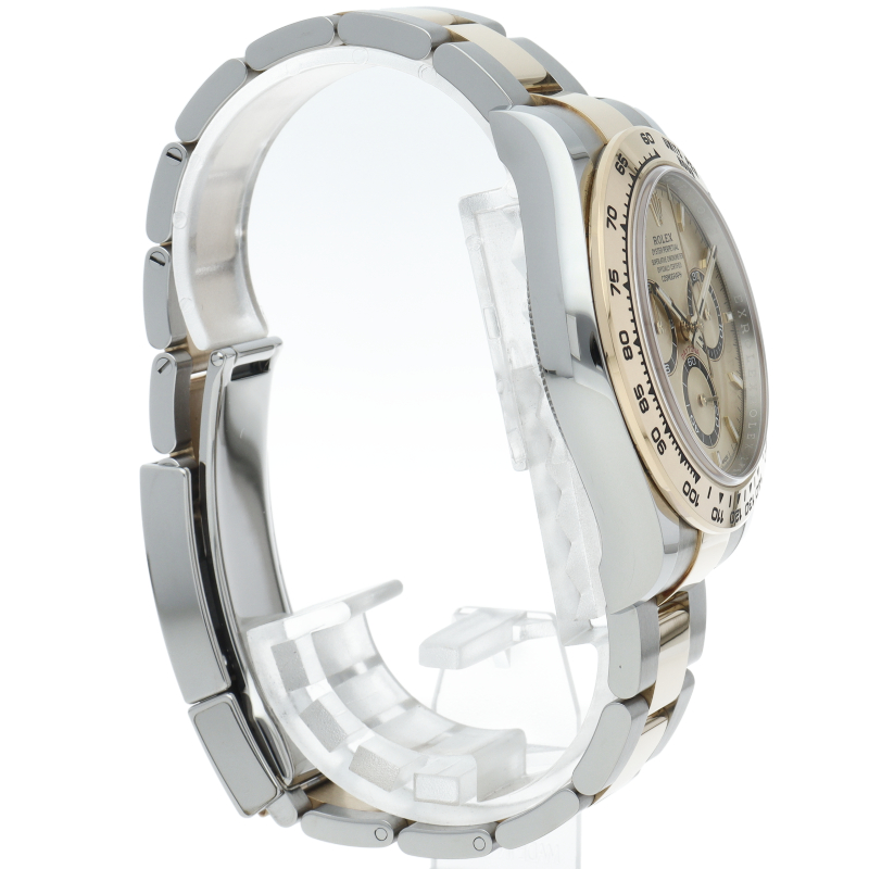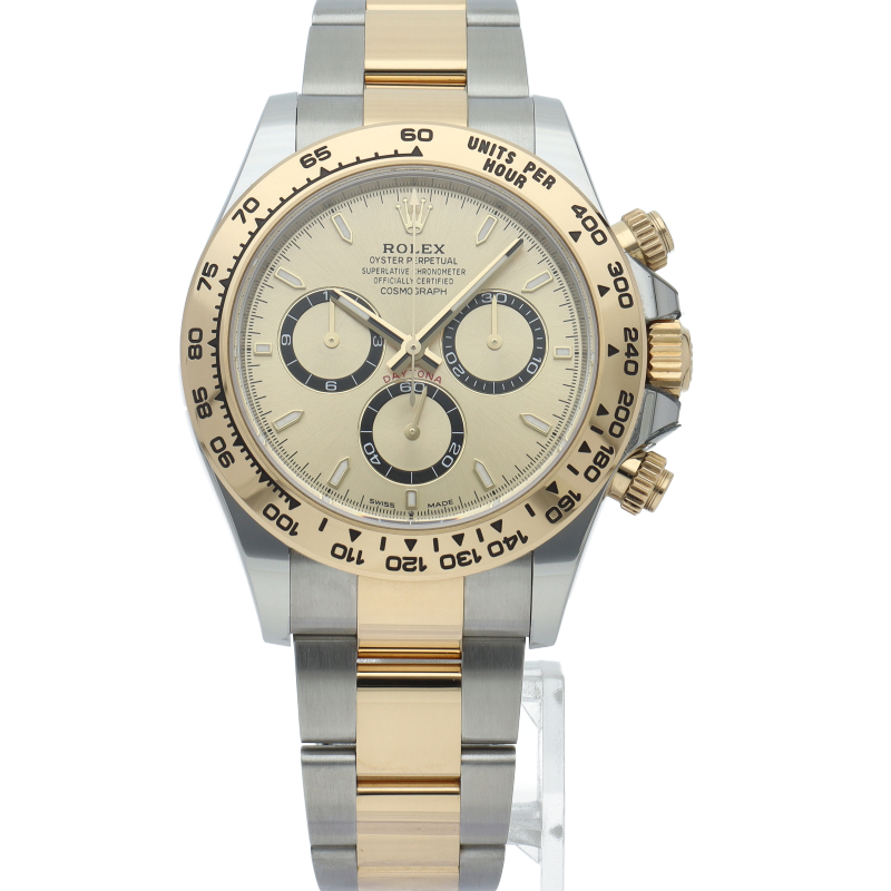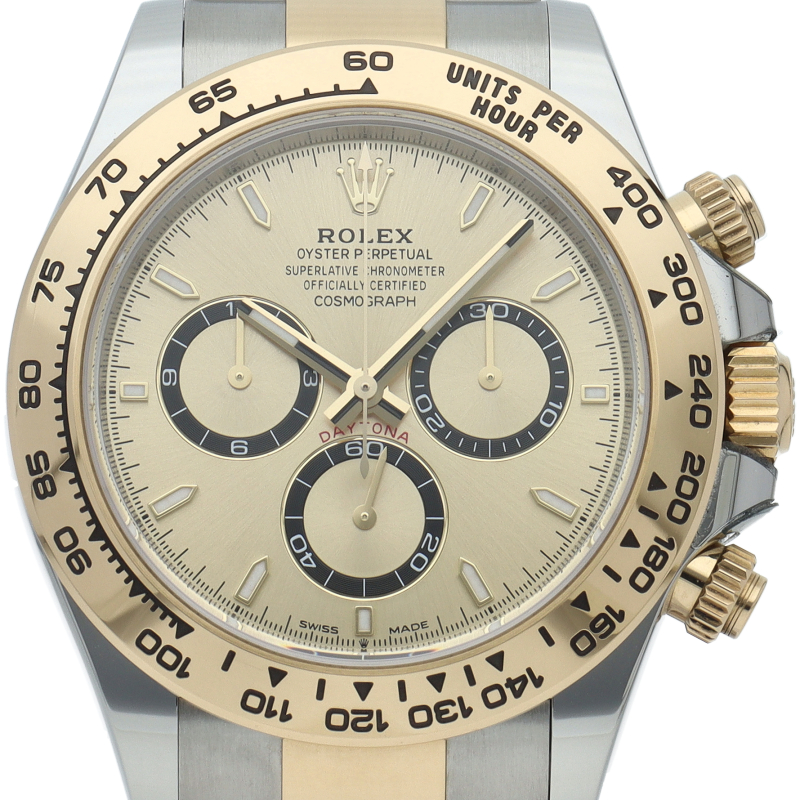 ロレックス「コスモグラフ デイトナ」(Ref.126503)。ステンレスと18Kイエローゴールドが融合した、華やかな新型コンビモデルです。最新ムーブメントCal.4131を搭載し、細部まで洗練されたデザインに進化。黄金のベゼルが手元で輝き、スポーティさと極上の高級感を兼ね備えた、ステータス性抜群の至高の一本です。