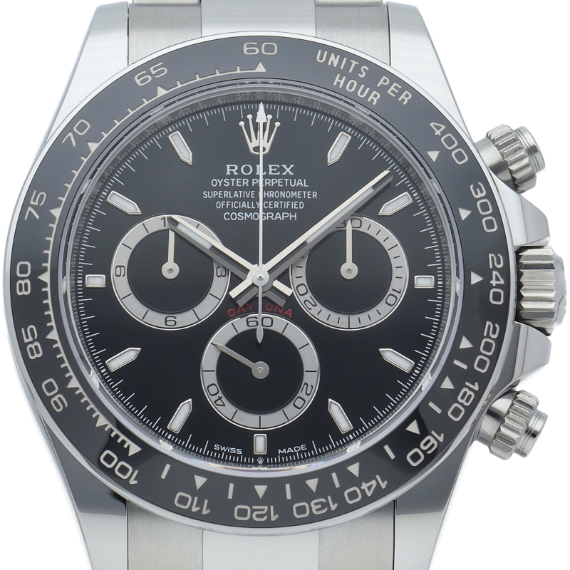 2023年新たにモデルチェンジしたコスモグラフ デイトナ。ロレックスのクロノグラフモデルとして登場したデイトナは、2023年に60周年を迎え第七世代となりました。変更点は、ベゼルのフチ周りにミドルケースと同一素材のメタルが使用され、ムーブメントにはコラムホイール&垂直クラッチ式のキャリバー4131を搭載。72時間パワーリザーブを誇ります。