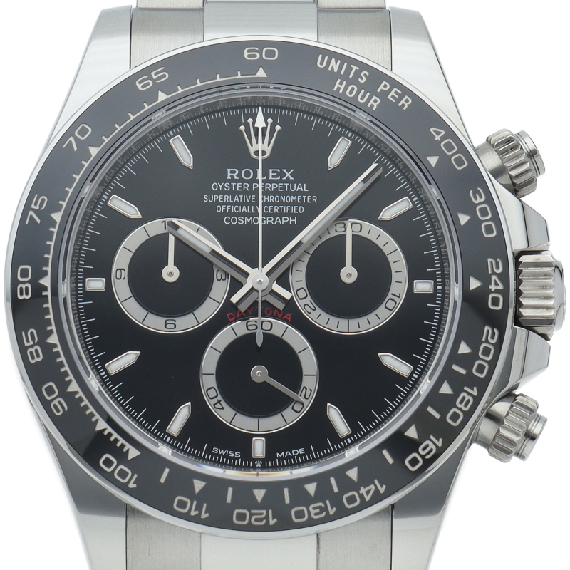 2023年新たにモデルチェンジしたコスモグラフ デイトナ。ロレックスのクロノグラフモデルとして登場したデイトナは、2023年に60周年を迎え第七世代となりました。変更点は、ベゼルのフチ周りにミドルケースと同一素材のメタルが使用され、ムーブメントにはコラムホイール&垂直クラッチ式のキャリバー4131を搭載。72時間パワーリザーブを誇ります。