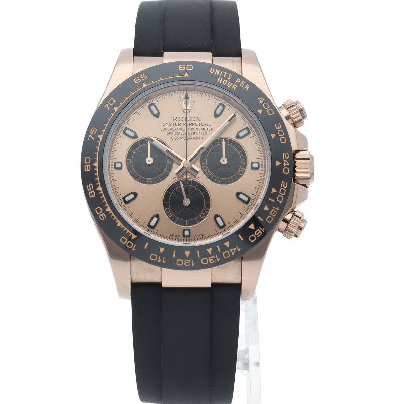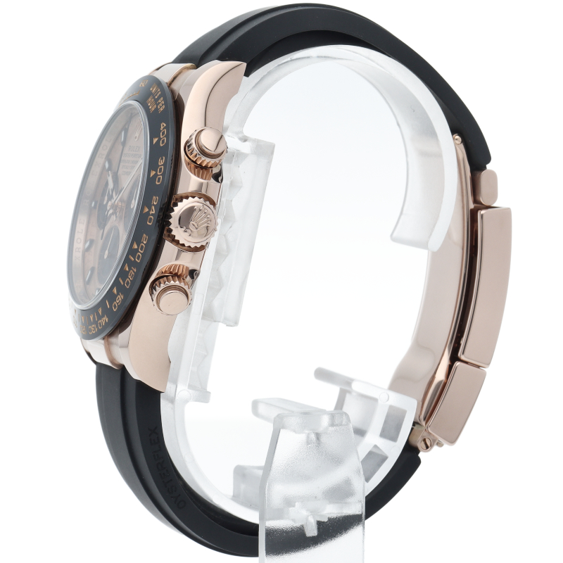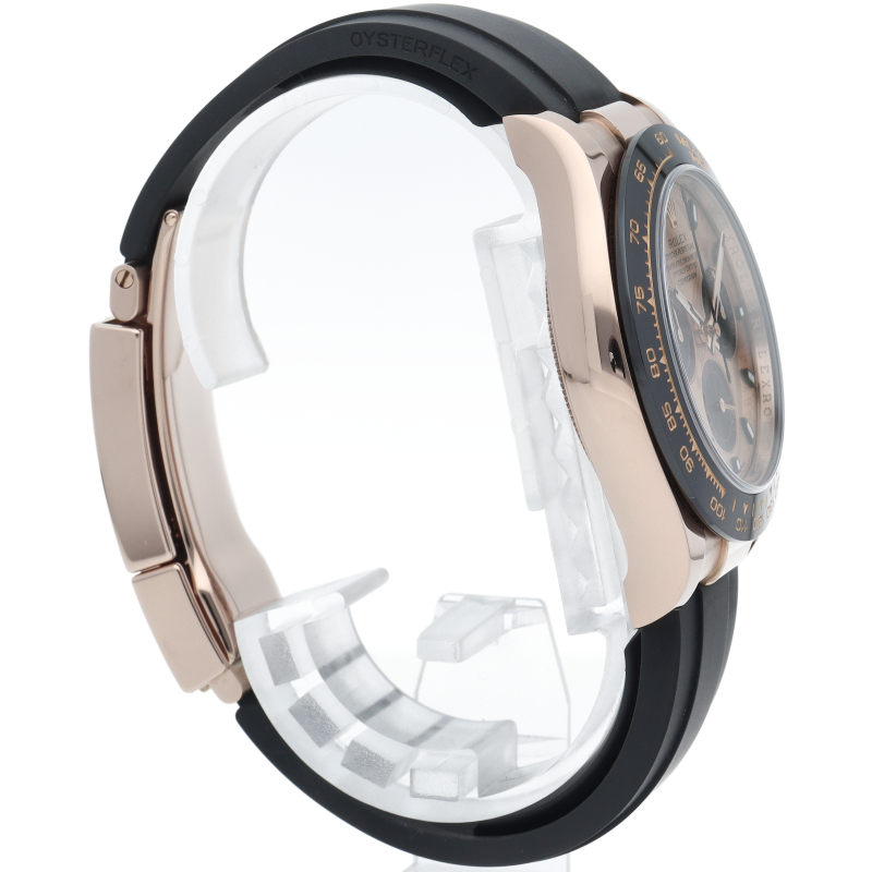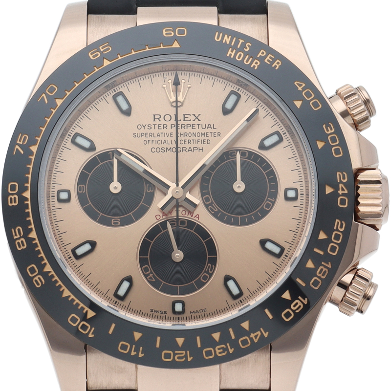 ロレックスの人気モデル「デイトナ」に、2011年に新たにラインナップされたエバーローズゴールドモデルに黒のセラミックベゼルを装着したタイプ。文字盤のピンクとブラックの相性抜群で上品な輝きがあります。