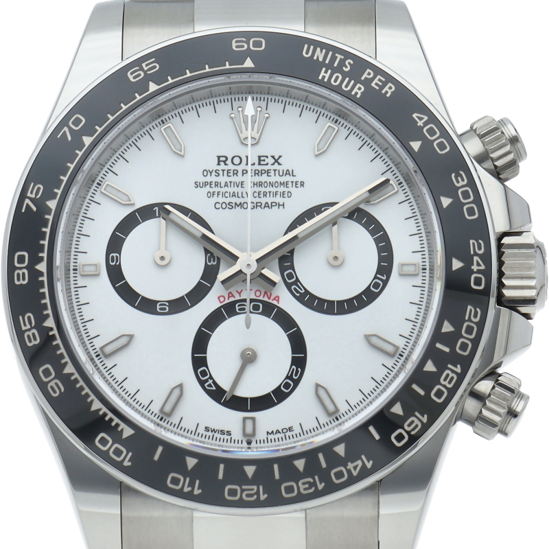 2023年新たにモデルチェンジしたコスモグラフ デイトナ。ロレックスのクロノグラフモデルとして登場したデイトナは、2023年に60周年を迎え第七世代となりました。変更点は、ベゼルのフチ周りにミドルケースと同一素材のメタルが使用され、ムーブメントにはコラムホイール&垂直クラッチ式のキャリバー4131を搭載。72時間パワーリザーブを誇ります。