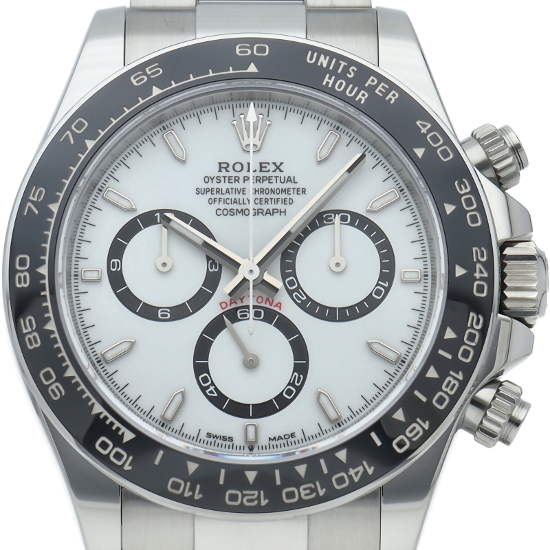 2023年新たにモデルチェンジしたコスモグラフ デイトナ。ロレックスのクロノグラフモデルとして登場したデイトナは、2023年に60周年を迎え第七世代となりました。変更点は、ベゼルのフチ周りにミドルケースと同一素材のメタルが使用され、ムーブメントにはコラムホイール&垂直クラッチ式のキャリバー4131を搭載。72時間パワーリザーブを誇ります。