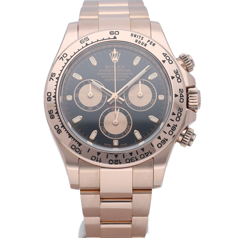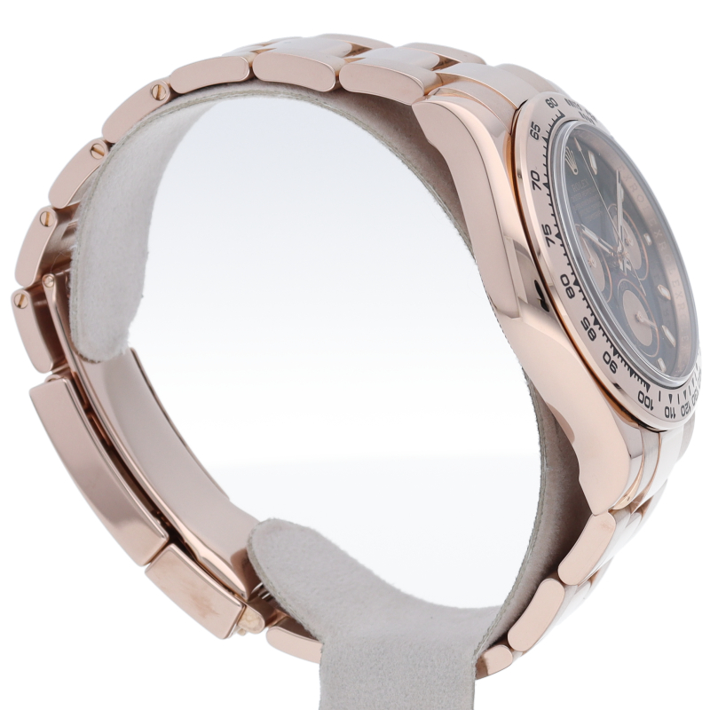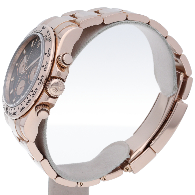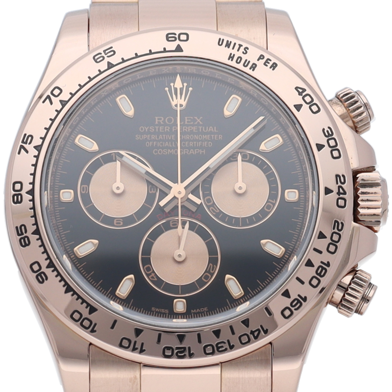 ロレックスのスポーツモデルの最高峰に君臨する「デイトナ」。自社開発クロノグラフムーブメント「Cal.4130」を搭載、機能性・デザイン性を兼ね備えた人気ウォッチ。エバーローズゴールドはロレックスが独自で開発した合金で、ラグジュアリーな雰囲気を演出。
