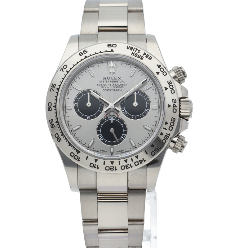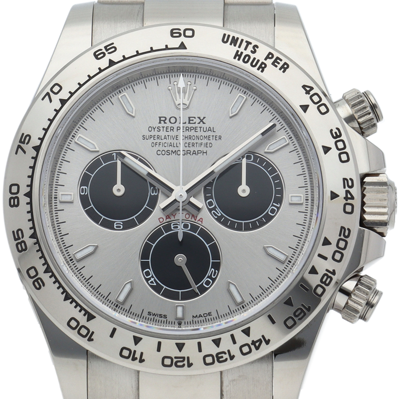 2023年新たにモデルチェンジした【コスモグラフ デイトナ】。ロレックスのクロノグラフモデルとして登場したデイトナは、2023年に60周年を迎え第七世代となりました。変更点は、ベゼルのフチ周りにミドルケースと同一素材のメタルが使用され、ムーブメントにはコラムホイール&垂直クラッチ式のキャリバー4131を搭載。72時間パワーリザーブを誇ります。