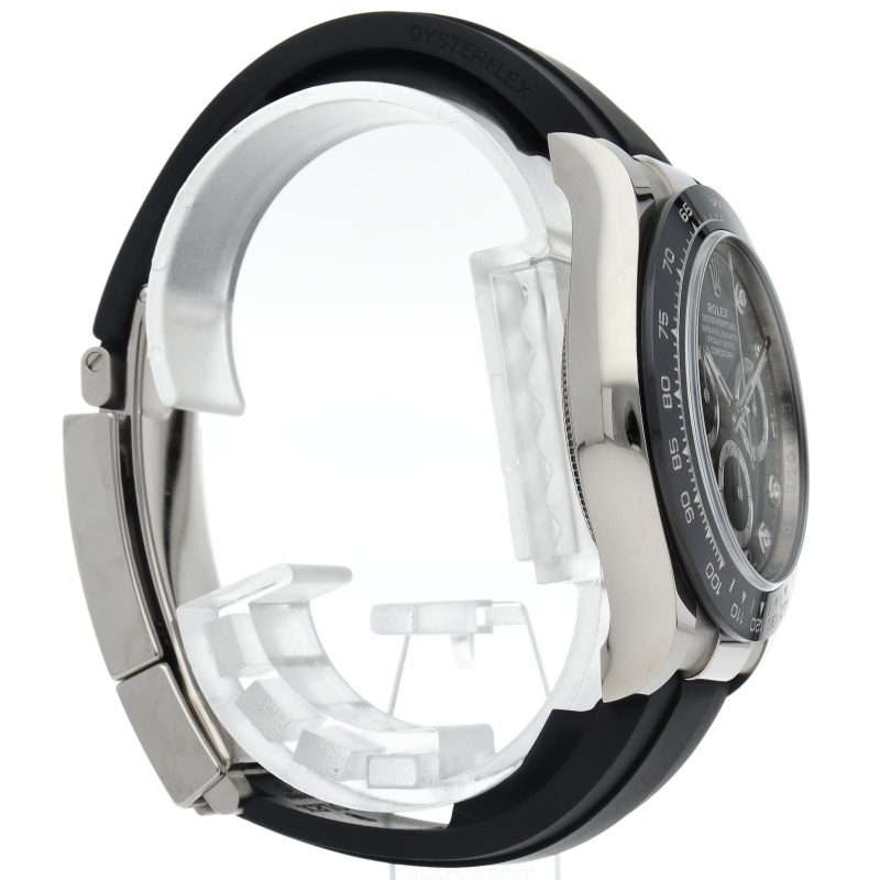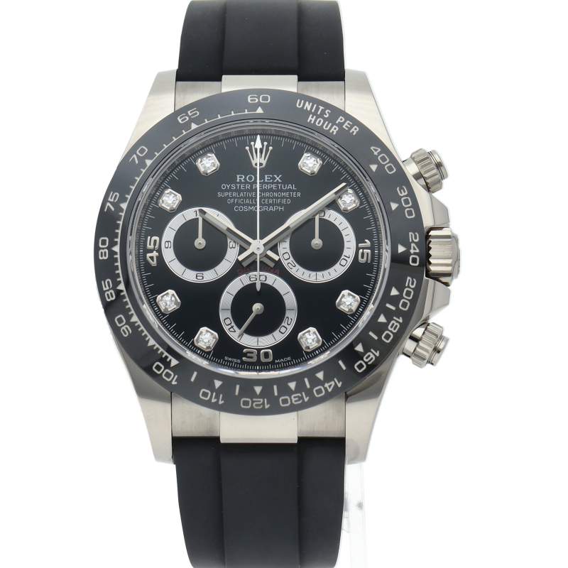 ロレックスのスポーツモデルの最高峰に君臨する「デイトナ」。自社開発クロノグラフムーブメント「Cal.4130」を搭載、機能性・デザイン性を兼ね備えた人気ウォッチ。セラクロムタキメーターベゼル仕様の人気モデルです。8Pダイヤ仕様。