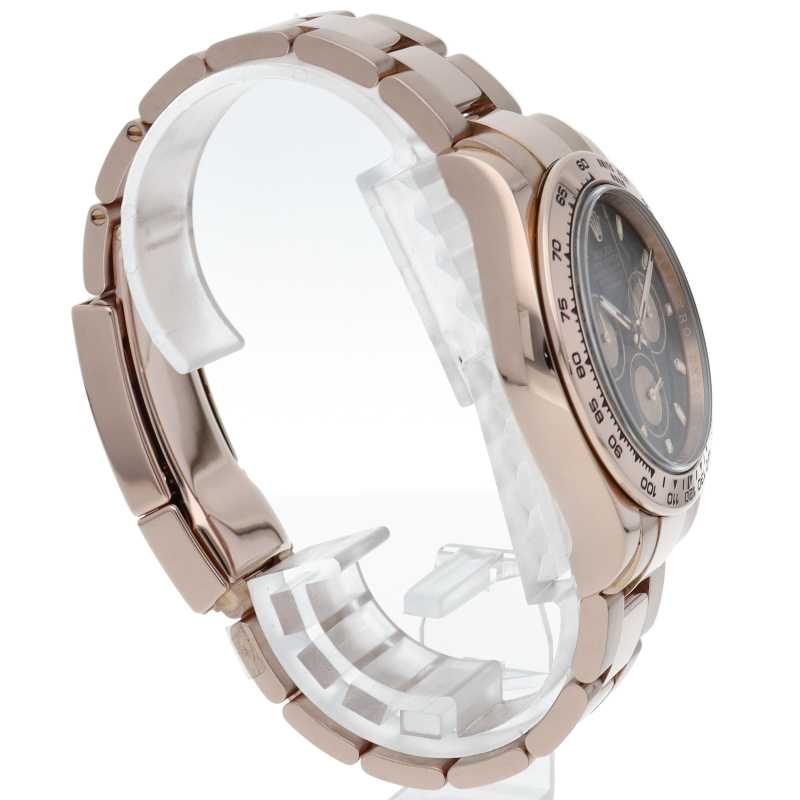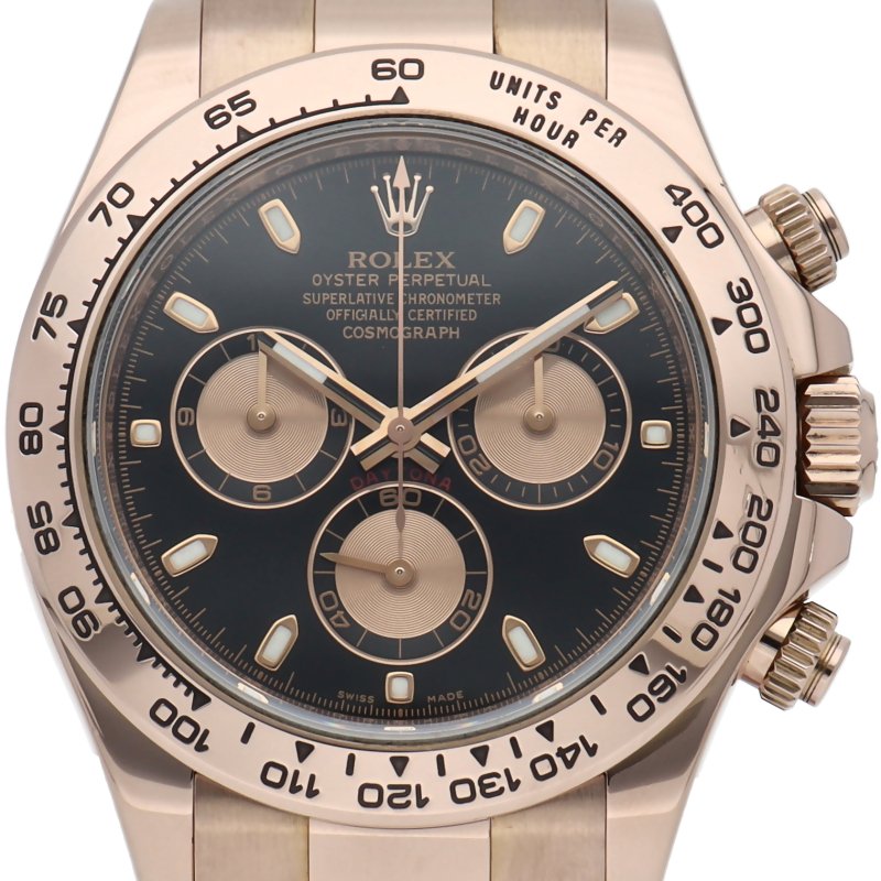 ロレックスのスポーツモデルの最高峰に君臨する「デイトナ」。自社開発クロノグラフムーブメント「Cal.4130」を搭載、機能性・デザイン性を兼ね備えた人気ウォッチ。エバーローズゴールドはロレックスが独自で開発した合金で、ラグジュアリーな雰囲気を演出。