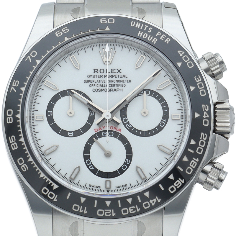 2023年新たにモデルチェンジしたコスモグラフ デイトナ。ロレックスのクロノグラフモデルとして登場したデイトナは、2023年に60周年を迎え第七世代となりました。変更点は、ベゼルのフチ周りにミドルケースと同一素材のメタルが使用され、ムーブメントにはコラムホイール&垂直クラッチ式のキャリバー4131を搭載。72時間パワーリザーブを誇ります。