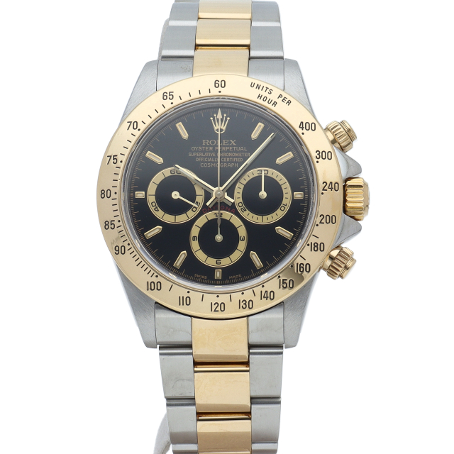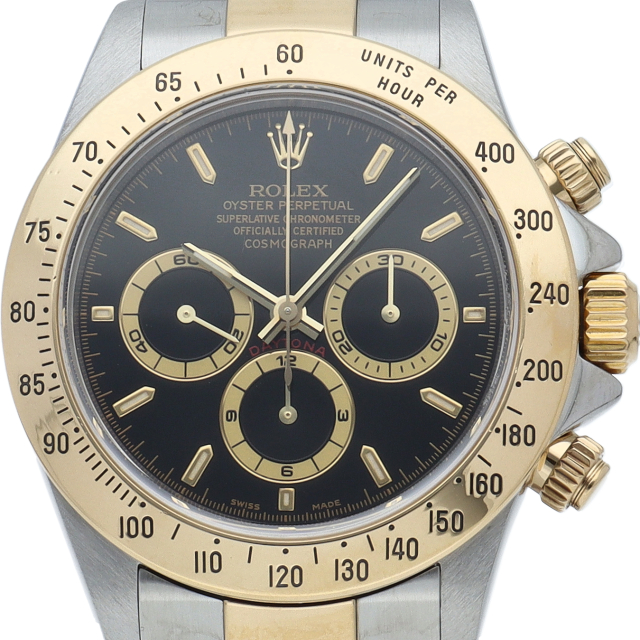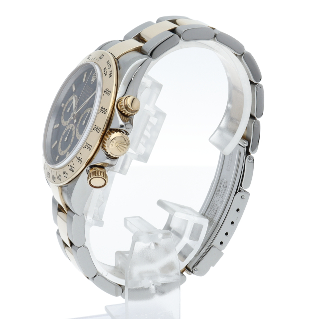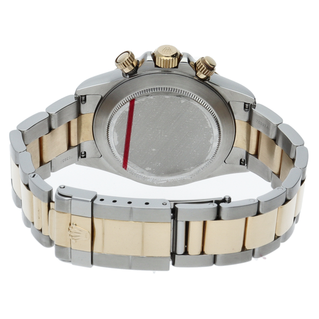 ゼニス社の世界最高峰ムーブメント「エルプリメロ」を搭載したロレックスのスポーツモデルの最上級モデル「デイトナ」。こちらはイエローゴールドとのコンビ仕様で高級感も増した1本。