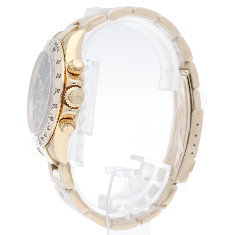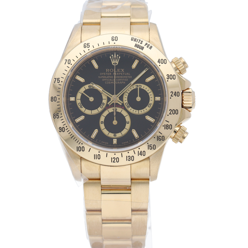 ロレックスのスポーツモデルの最上級モデル「デイトナ」。ゼニス社のエルプリメロベースムーブメントが搭載されたモデルです。スポーツモデルらしいアクティブ感と見た目の豪華さ、そしてK18YGのずっしりとした存在感を同時に味わえるモデルです。