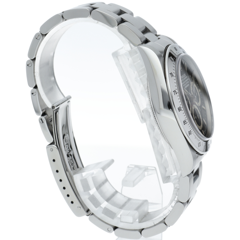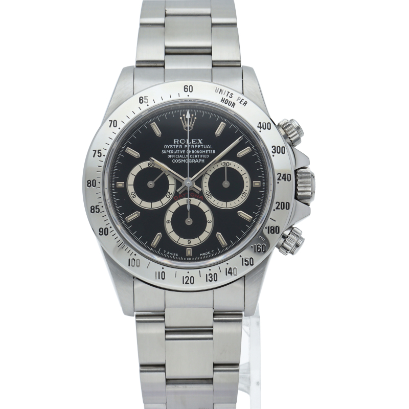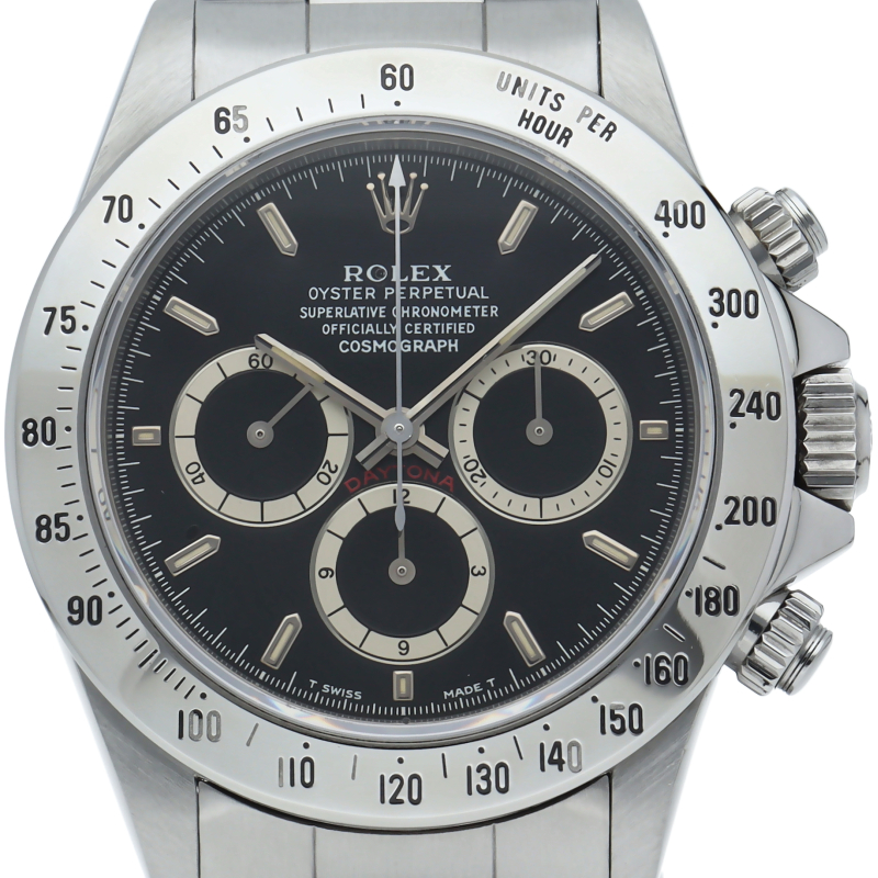 ロレックスのスポーツモデルの最高峰に君臨する「デイトナ」。機能性・デザイン性を兼ね備えた人気ウォッチ。既に生産終了となったエルプリメロ搭載で価格も高騰中です。トリチウムの文字盤に逆6という希少性の高い商品です。