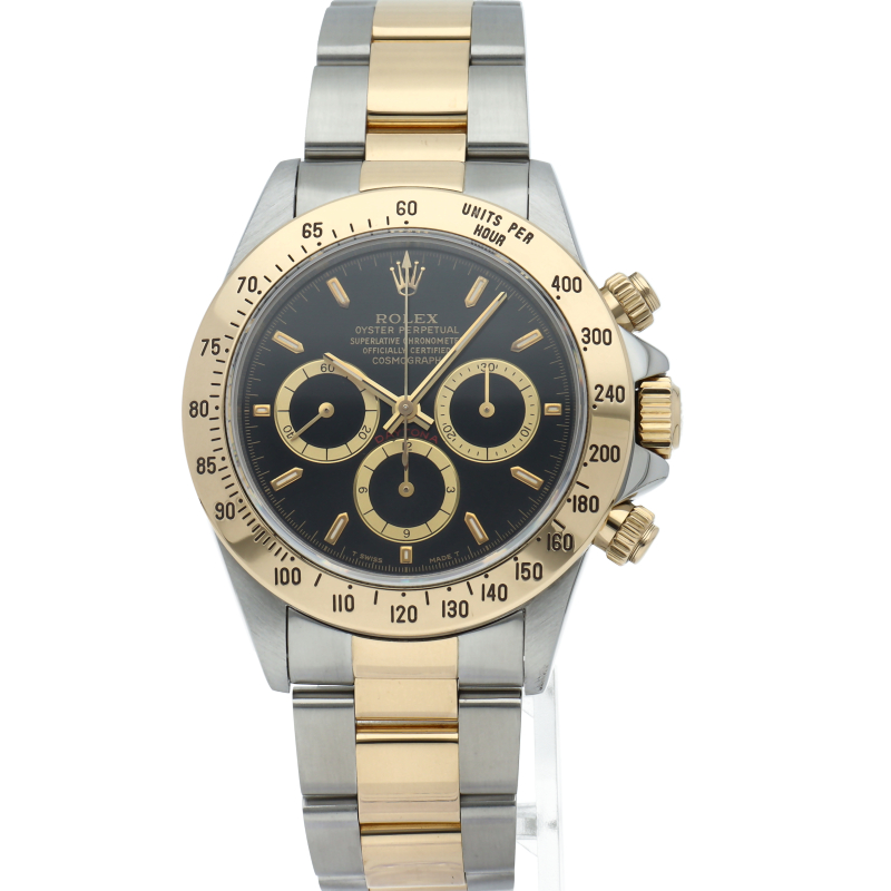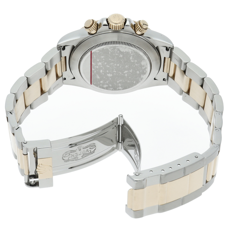 ゼニス社の世界最高峰ムーブメント「エルプリメロ」を搭載したロレックスのスポーツモデルの最上級モデル「デイトナ」。こちらはイエローゴールドとのコンビ仕様で高級感も増した1本。