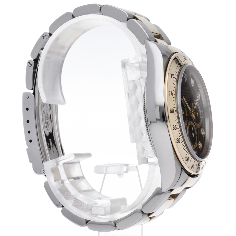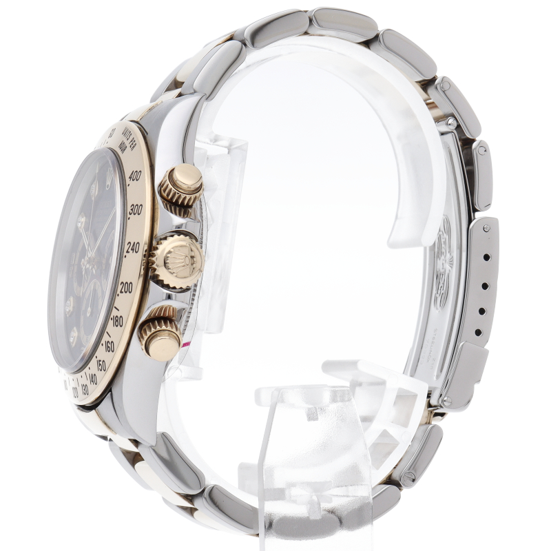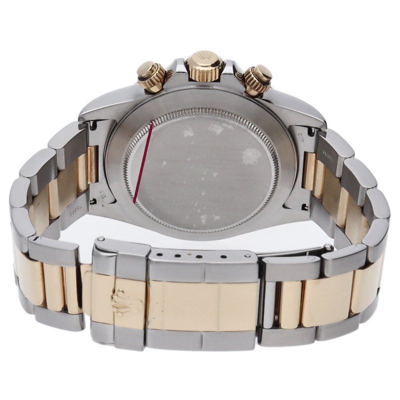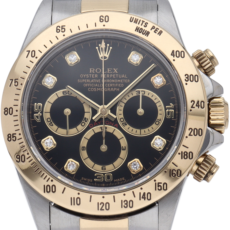 ゼニス社の世界最高峰ムーブメント「エルプリメロ」を搭載したロレックスのスポーツモデルの最上級モデル「デイトナ」。こちらはイエローゴールドとのコンビ仕様で高級感も増した1本。