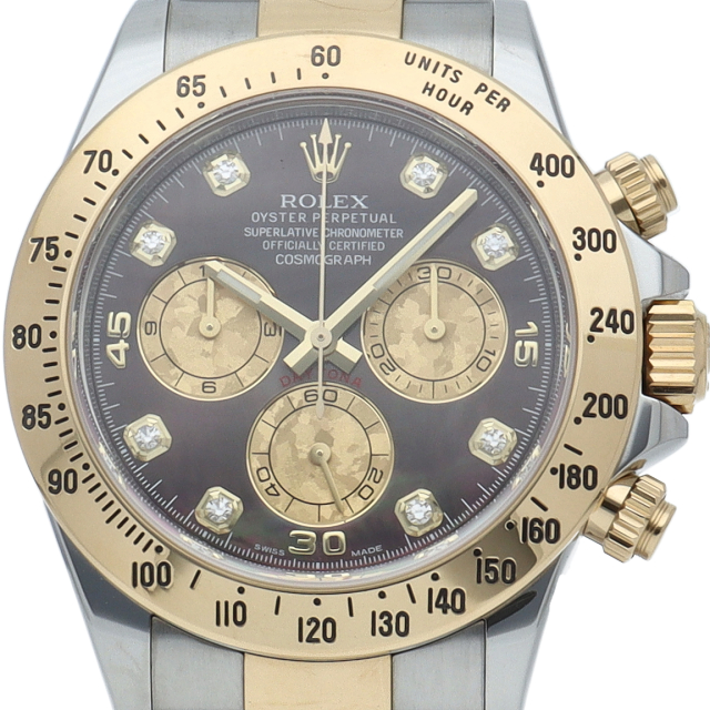 ロレックスのスポーツモデルの最高峰に君臨する「デイトナ」。自社開発クロノグラフムーブメント「Cal.4130」を搭載、機能性・デザイン性を兼ね備えた人気ウォッチ。イエローゴールドとステンレスのコンビ仕様に8Pダイヤが施されております。