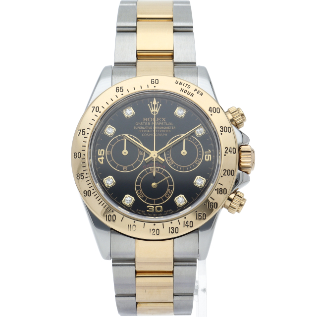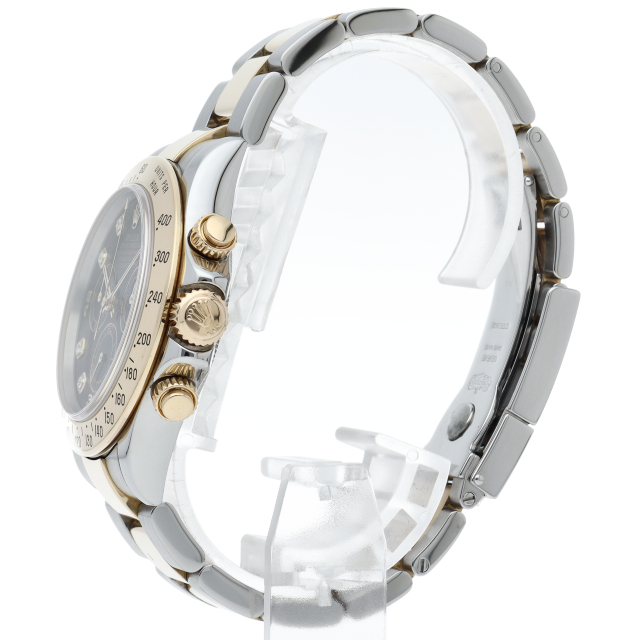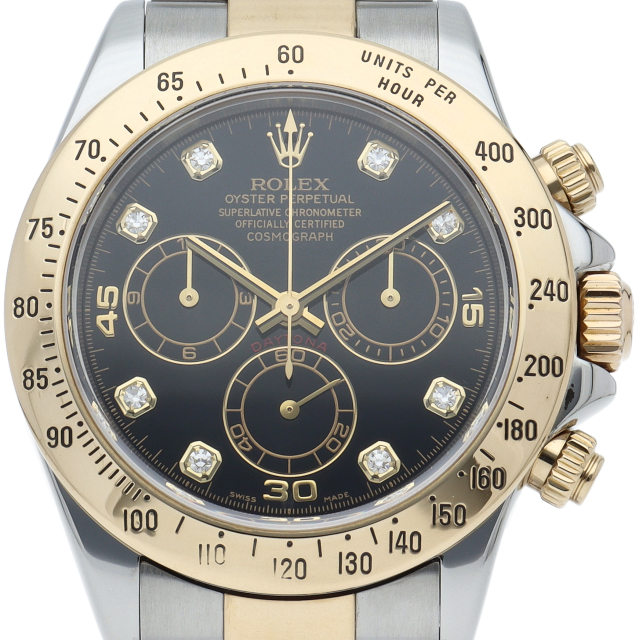 ロレックスのスポーツモデルの最高峰に君臨する「デイトナ」。自社開発クロノグラフムーブメント「Cal.4130」を搭載、機能性・デザイン性を兼ね備えた人気ウォッチ。イエローゴールドとステンレスのコンビ仕様に8Pダイヤが施されております。