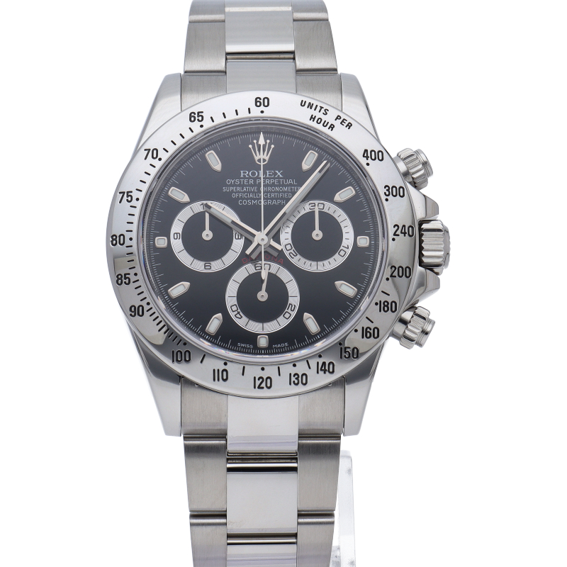 ロレックスのスポーツモデルの最高峰に君臨する「デイトナ」。自社開発クロノグラフムーブメント「Cal.4130」を搭載、機能性・デザイン性を兼ね備えた人気ウォッチ。