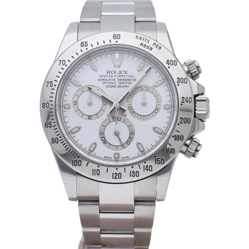 ロレックスのスポーツモデルの最高峰に君臨する「デイトナ」。自社開発クロノグラフムーブメント「Cal.4130」を搭載、機能性・デザイン性を兼ね備えた人気ウォッチ。