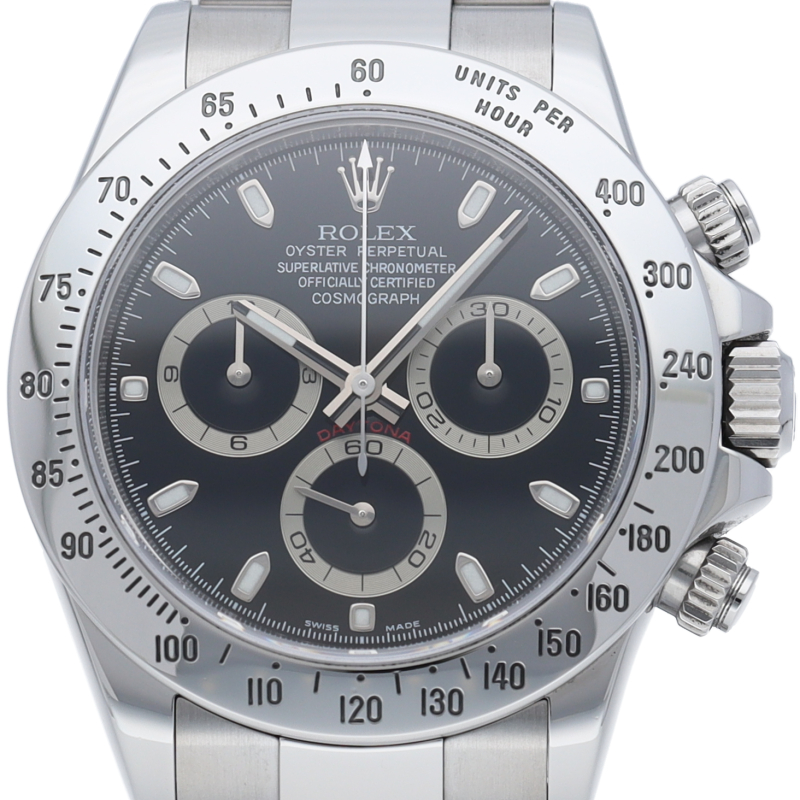 ロレックスのスポーツモデルの最高峰に君臨する「デイトナ」。自社開発クロノグラフムーブメント「Cal.4130」を搭載、機能性・デザイン性を兼ね備えた人気ウォッチ。