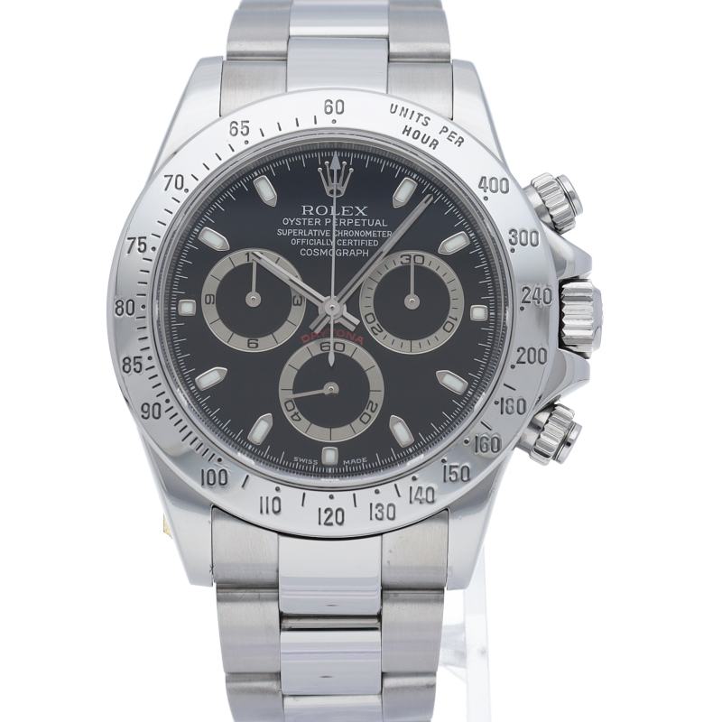 ロレックスのスポーツモデルの最高峰に君臨する「デイトナ」。自社開発クロノグラフムーブメント「Cal.4130」を搭載、機能性・デザイン性を兼ね備えた人気ウォッチ。