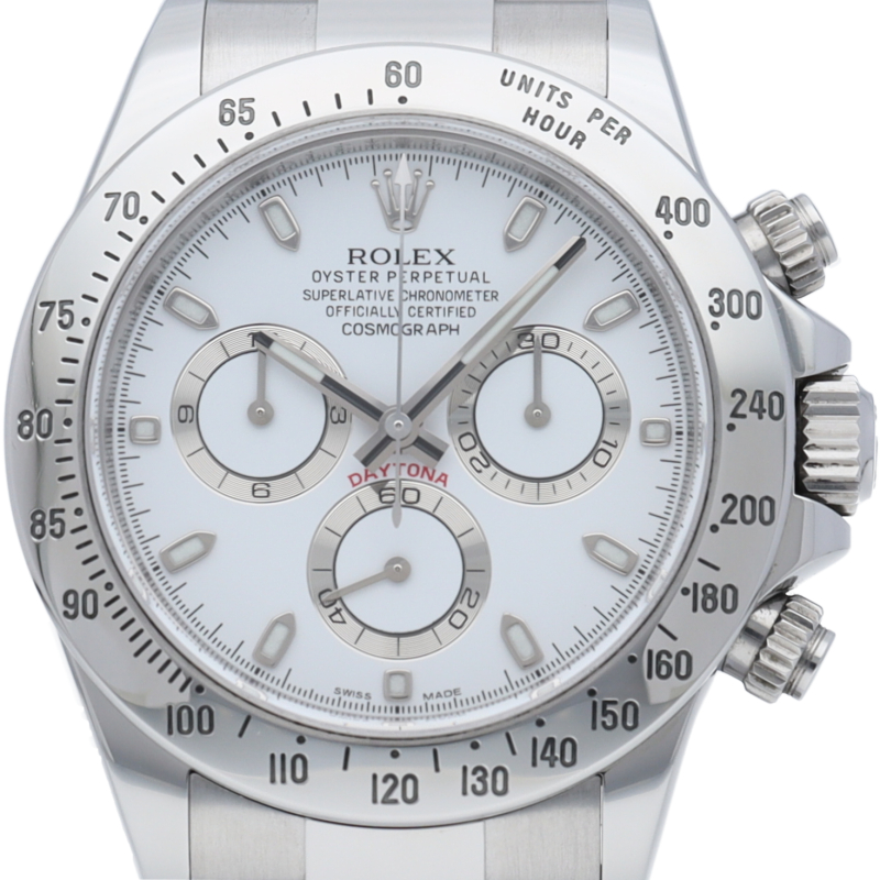 ロレックスのスポーツモデルの最高峰に君臨する「デイトナ」。自社開発クロノグラフムーブメント「Cal.4130」を搭載、機能性・デザイン性を兼ね備えた人気ウォッチ。