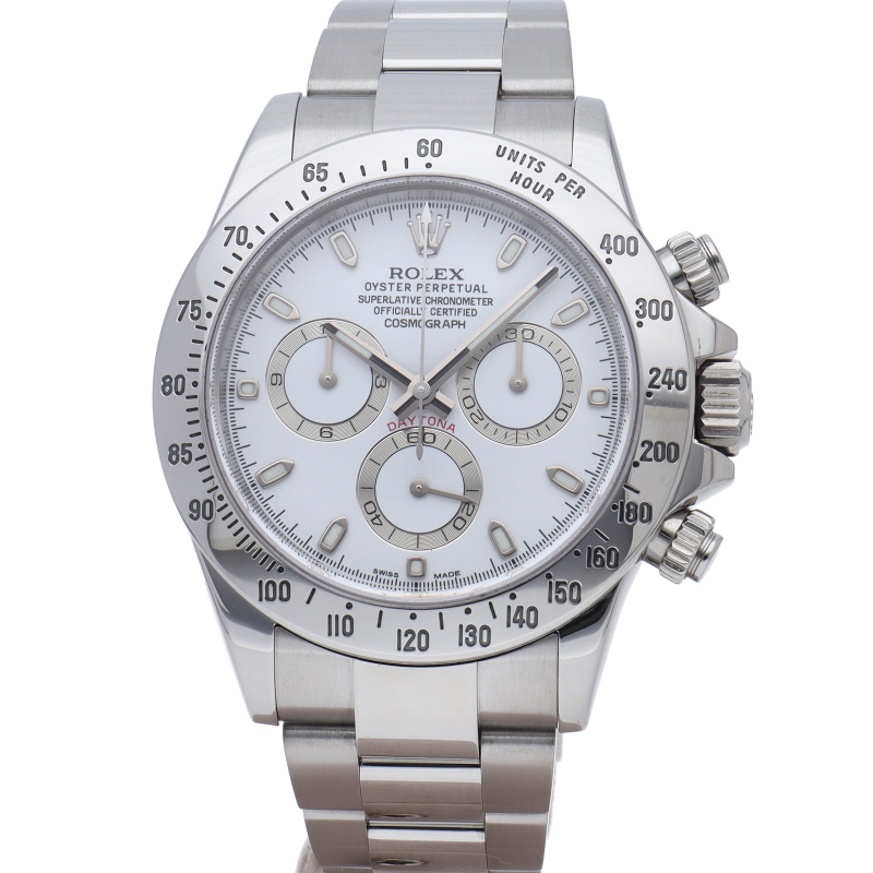 ロレックスのスポーツモデルの最高峰に君臨する「デイトナ」。自社開発クロノグラフムーブメント「Cal.4130」を搭載、機能性・デザイン性を兼ね備えた人気ウォッチ。