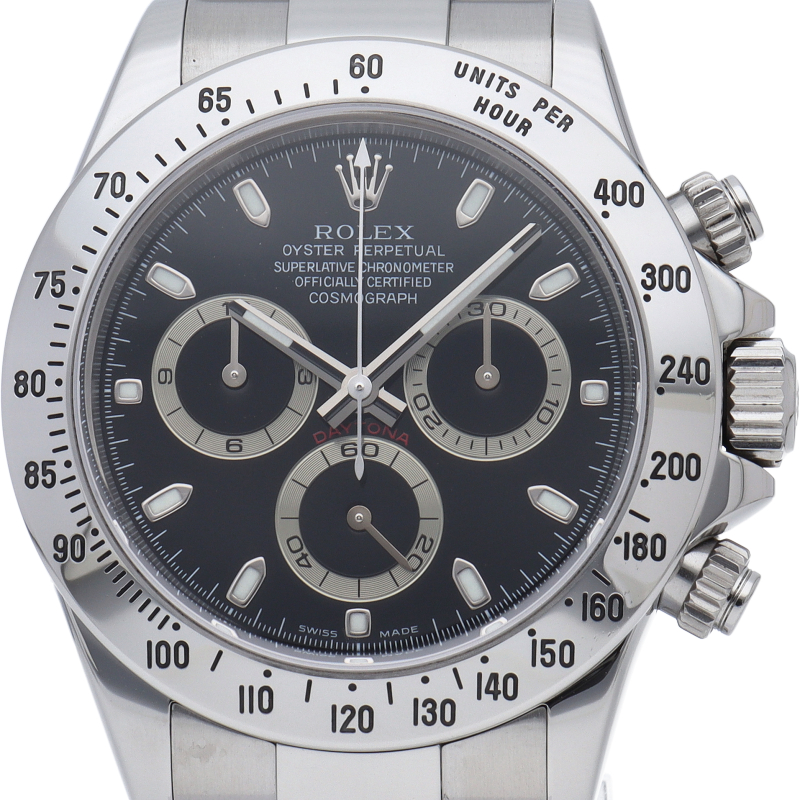 ロレックスのスポーツモデルの最高峰に君臨する「デイトナ」。自社開発クロノグラフムーブメント「Cal.4130」を搭載、機能性・デザイン性を兼ね備えた人気ウォッチ。