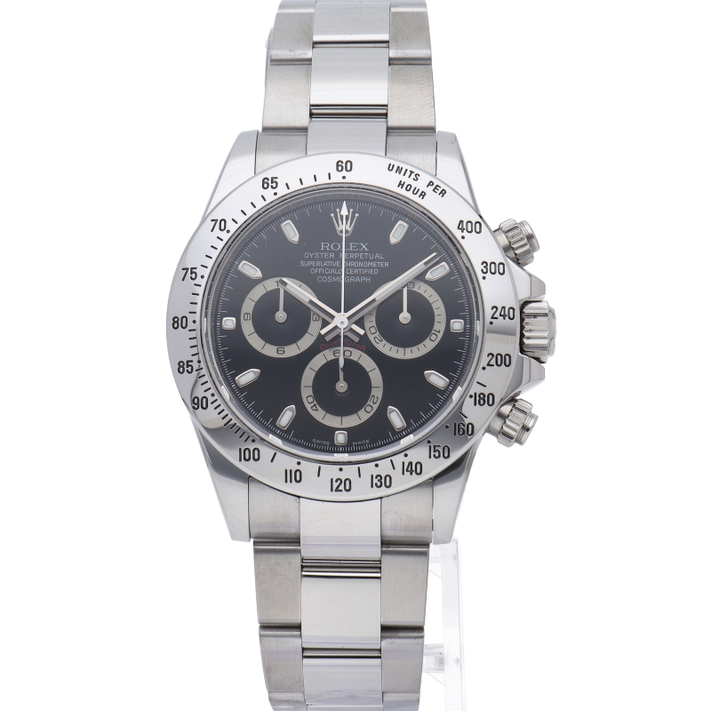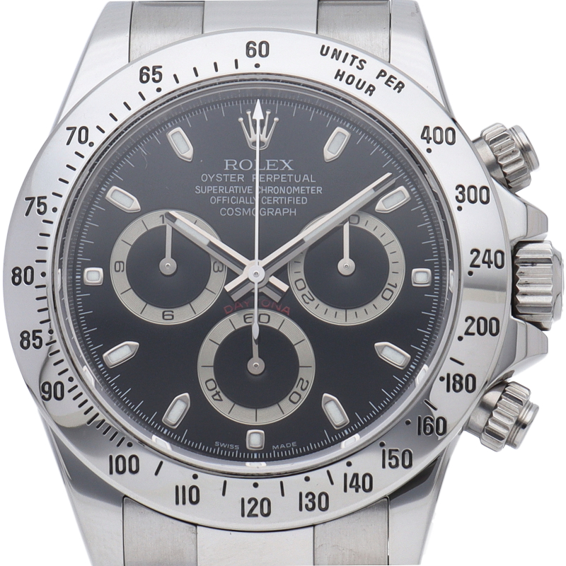 ロレックスのスポーツモデルの最高峰に君臨する「デイトナ」。自社開発クロノグラフムーブメント「Cal.4130」を搭載、機能性・デザイン性を兼ね備えた人気ウォッチ。