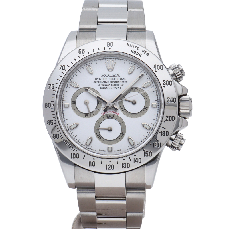 ロレックスのスポーツモデルの最高峰に君臨する「デイトナ」。自社開発クロノグラフムーブメント「Cal.4130」を搭載、機能性・デザイン性を兼ね備えた人気ウォッチ。