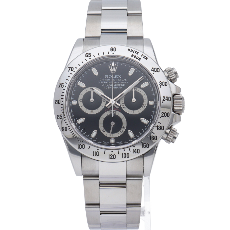ロレックスのスポーツモデルの最高峰に君臨する「デイトナ」。自社開発クロノグラフムーブメント「Cal.4130」を搭載、機能性・デザイン性を兼ね備えた人気ウォッチ。