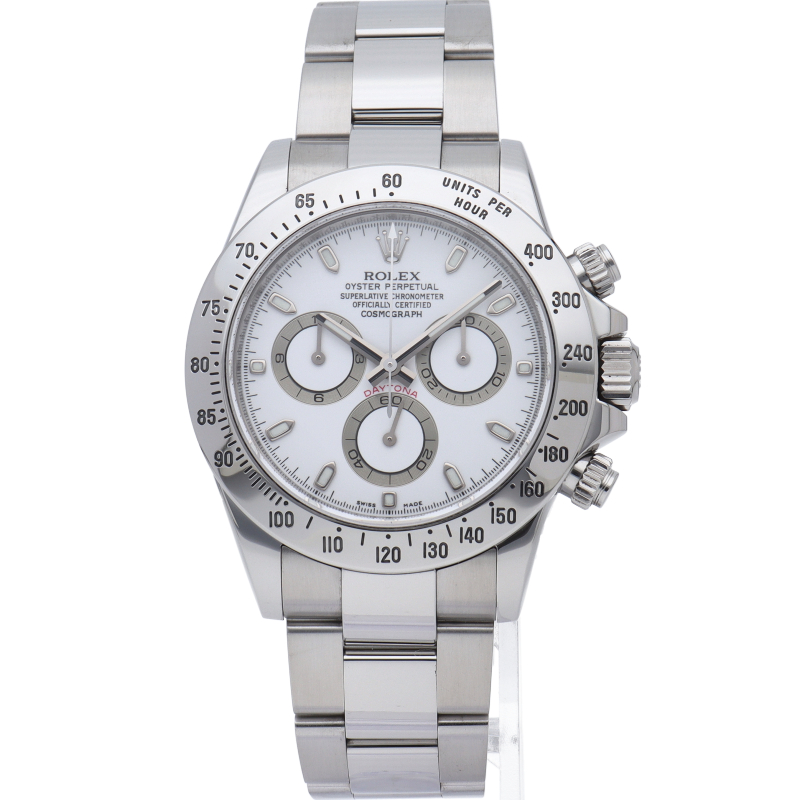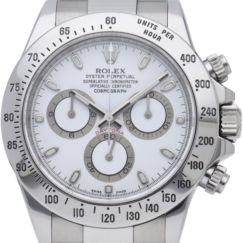 ロレックスのスポーツモデルの最高峰に君臨する「デイトナ」。自社開発クロノグラフムーブメント「Cal.4130」を搭載、機能性・デザイン性を兼ね備えた人気ウォッチ。