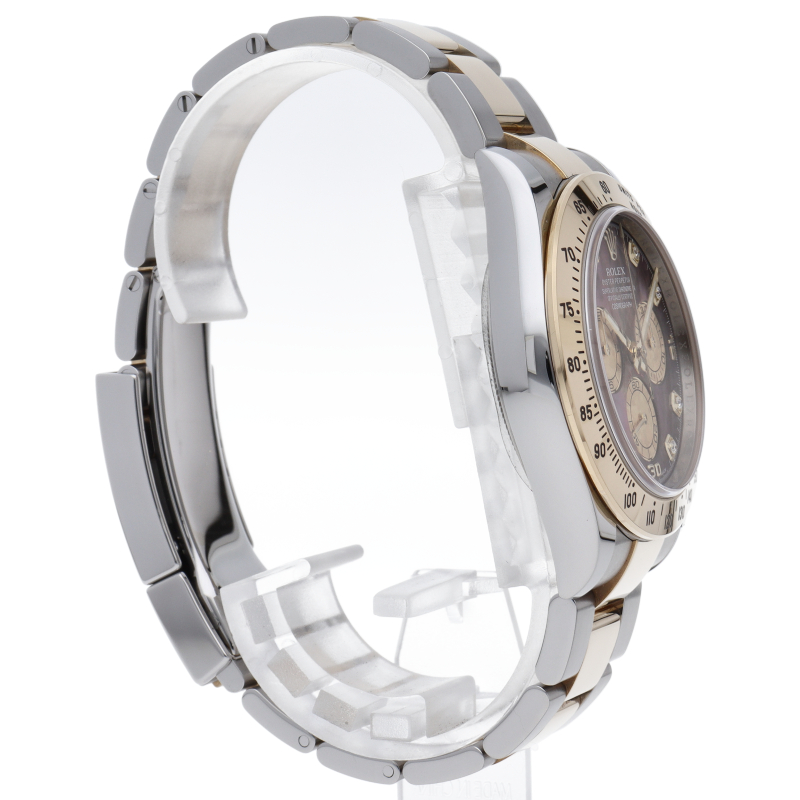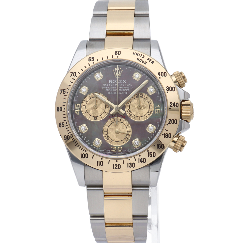 ロレックスのスポーツモデルの最高峰に君臨する「デイトナ」。自社開発クロノグラフムーブメント「Cal.4130」を搭載、機能性・デザイン性を兼ね備えた人気ウォッチ。イエローゴールドとステンレスのコンビ仕様に8Pダイヤが施されております。