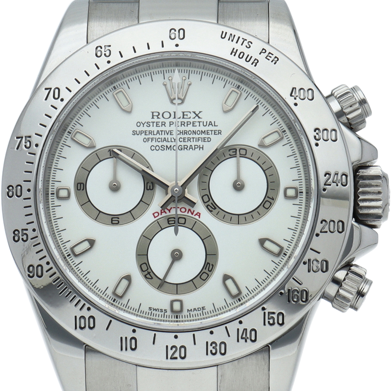 ロレックスのスポーツモデルの最高峰に君臨する「デイトナ」。自社開発クロノグラフムーブメント「Cal.4130」を搭載、機能性・デザイン性を兼ね備えた人気ウォッチ。