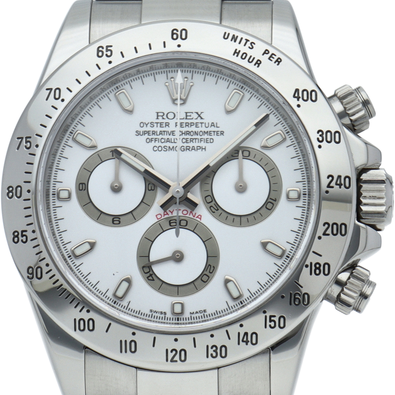 ロレックスのスポーツモデルの最高峰に君臨する「デイトナ」。自社開発クロノグラフムーブメント「Cal.4130」を搭載、機能性・デザイン性を兼ね備えた人気ウォッチ。
