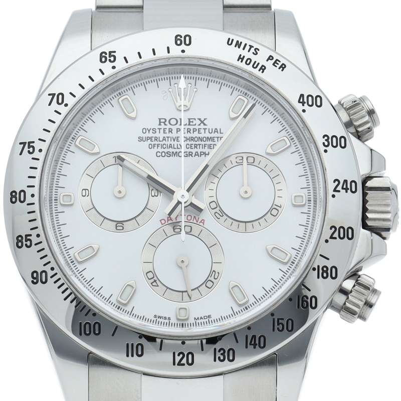 ロレックスのスポーツモデルの最高峰に君臨する「デイトナ」。自社開発クロノグラフムーブメント「Cal.4130」を搭載、機能性・デザイン性を兼ね備えた人気ウォッチ。