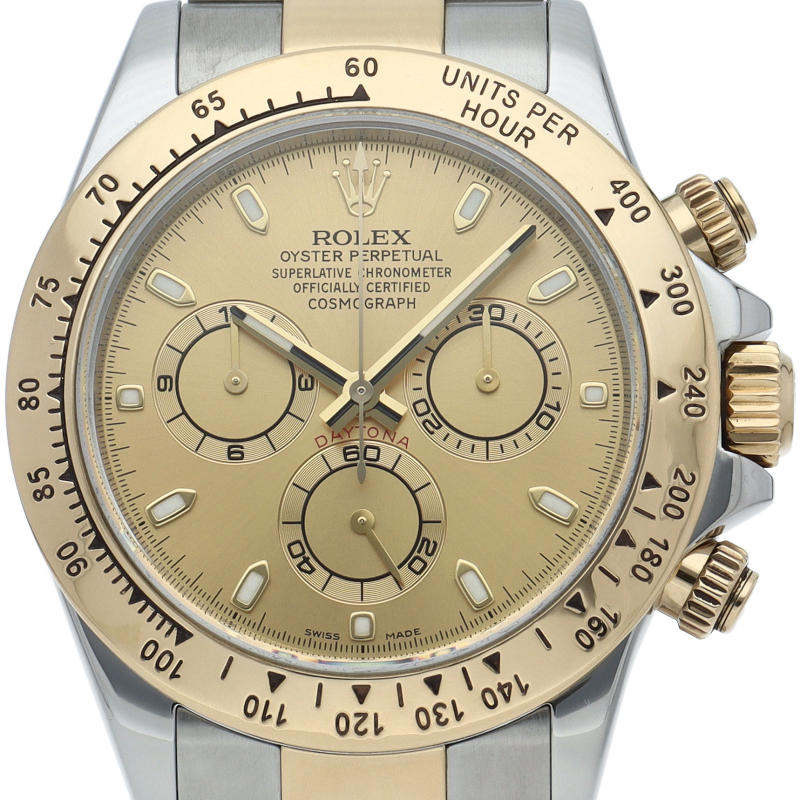ロレックスのスポーツモデルの最高峰に君臨する「デイトナ」。仕様変更が行われた116503でタキメーターベゼルのドットが視認性を考えて、▲のタイプに変更されました。
