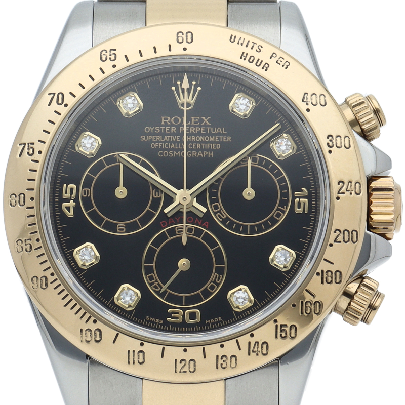 ロレックスのスポーツモデルの最高峰に君臨する「デイトナ」。自社開発クロノグラフムーブメント「Cal.4130」を搭載、機能性・デザイン性を兼ね備えた人気ウォッチ。イエローゴールドとステンレスのコンビ仕様に8Pダイヤが施されております。