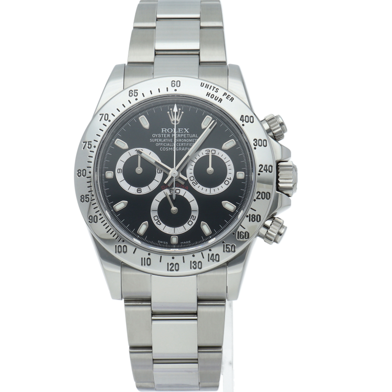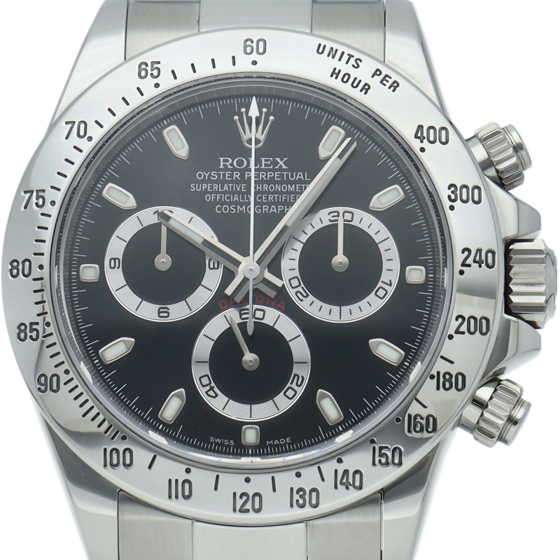 ロレックスのスポーツモデルの最高峰に君臨する「デイトナ」。自社開発クロノグラフムーブメント「Cal.4130」を搭載、機能性・デザイン性を兼ね備えた人気ウォッチ。
