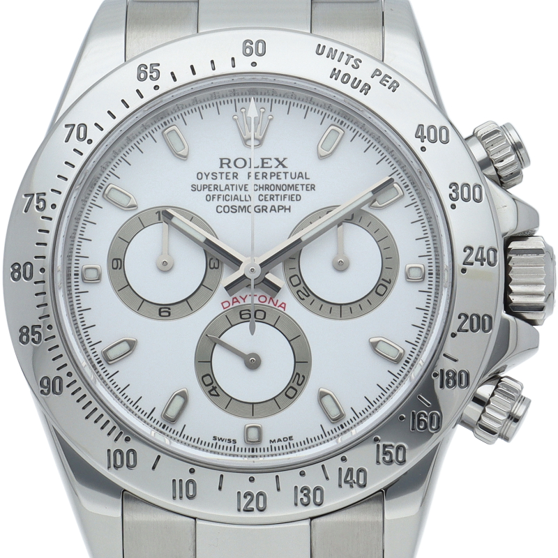 ロレックスのスポーツモデルの最高峰に君臨する「デイトナ」。自社開発クロノグラフムーブメント「Cal.4130」を搭載、機能性・デザイン性を兼ね備えた人気ウォッチ。