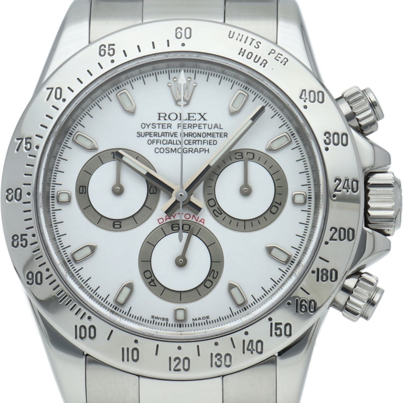 ロレックスのスポーツモデルの最高峰に君臨する「デイトナ」。自社開発クロノグラフムーブメント「Cal.4130」を搭載、機能性・デザイン性を兼ね備えた人気ウォッチ。
