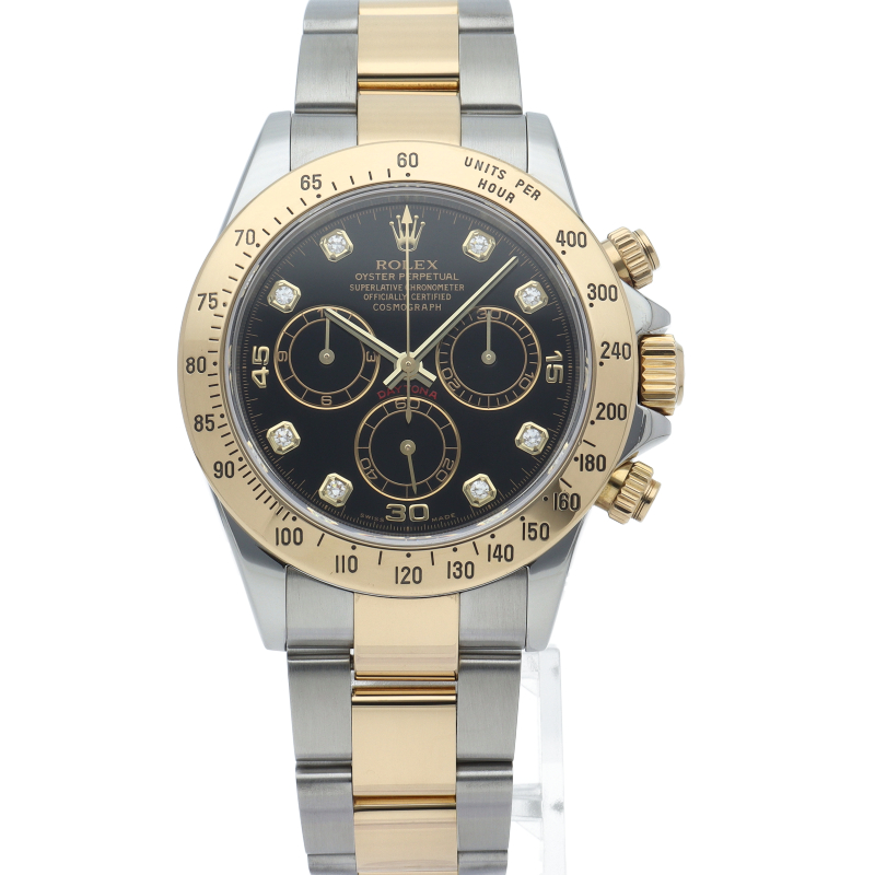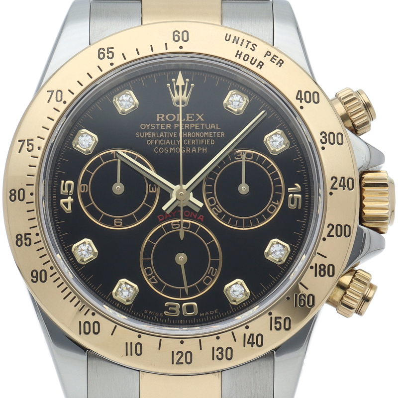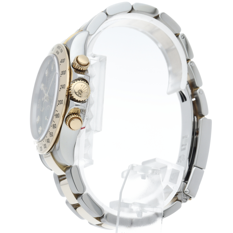 ロレックスのスポーツモデルの最高峰に君臨する「デイトナ」。自社開発クロノグラフムーブメント「Cal.4130」を搭載、機能性・デザイン性を兼ね備えた人気ウォッチ。イエローゴールドとステンレスのコンビ仕様に8Pダイヤが施されております。
