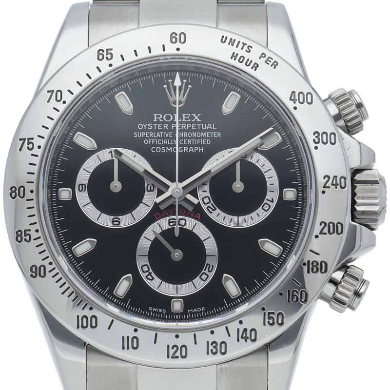 ロレックスのスポーツモデルの最高峰に君臨する「デイトナ」。自社開発クロノグラフムーブメント「Cal.4130」を搭載、機能性・デザイン性を兼ね備えた人気ウォッチ。