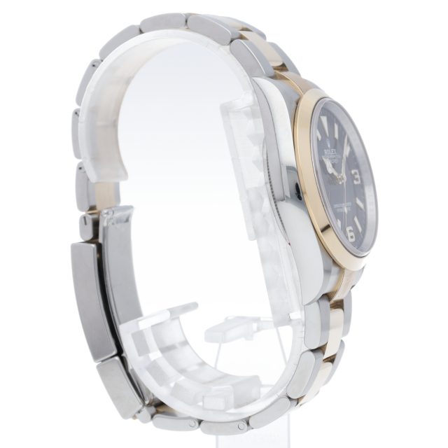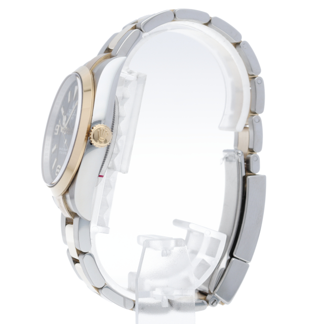 新たに加わったイエローゴールドとステンレスのコンビモデルのRef.124273も、124270と同様に36mmケースでの登場となりました。ムーブメントには、高いエネルギー効率と信頼性を両立させるロレックス特許のクロナジーエスケープメントを採用し、シリコン製ヘアスプリングと高性能パラフレックスショックアブソーバを装備した70時間パワーリザーブのキャリバー3230を搭載。