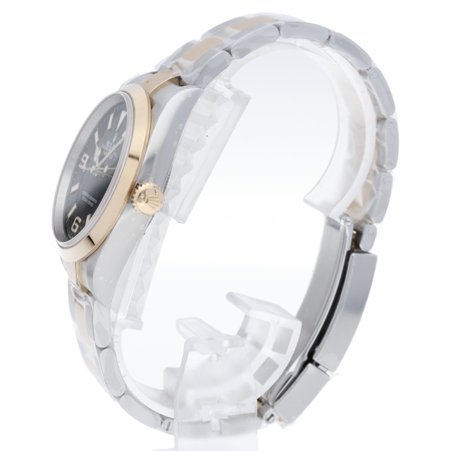 新たに加わったイエローゴールドとステンレスのコンビモデルのRef.124273も、124270と同様に36mmケースでの登場となりました。ムーブメントには、高いエネルギー効率と信頼性を両立させるロレックス特許のクロナジーエスケープメントを採用し、シリコン製ヘアスプリングと高性能パラフレックスショックアブソーバを装備した70時間パワーリザーブのキャリバー3230を搭載。
